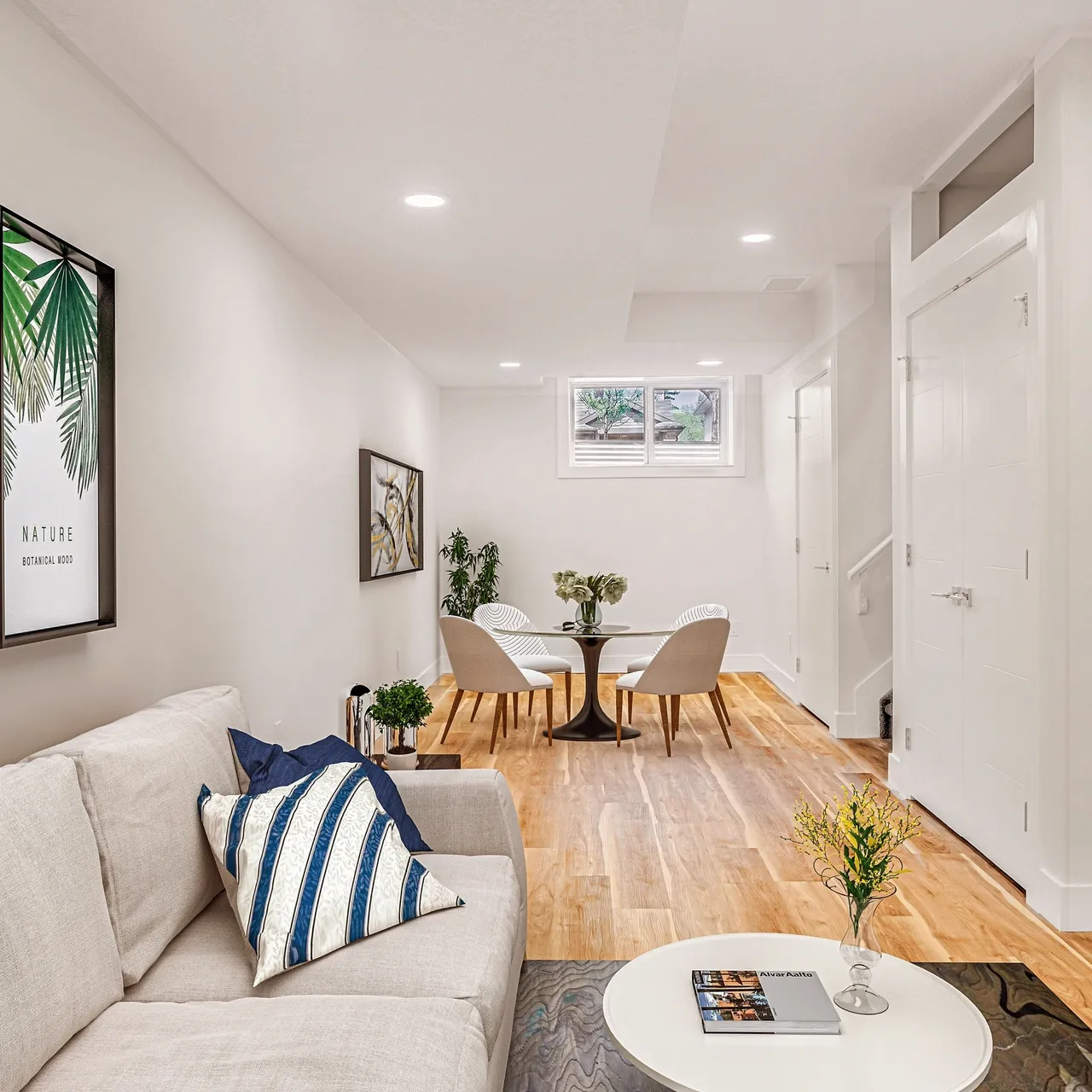 For a family suite, basement renovation costs typically range from the mid $30,000s to the lower $50,000s. The final cost depends on your specific needs, such as the size of the basement, number of bedrooms and bathrooms, and custom features like bars, cabinetry, glass walls, home offices, and kid-friendly spaces. For a secondary suite for rentals, costs usually start in the lower $60,000s. To get an accurate estimate tailored to your vision, contact us for a personalized consultation.